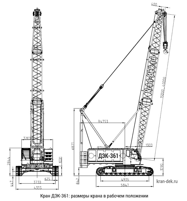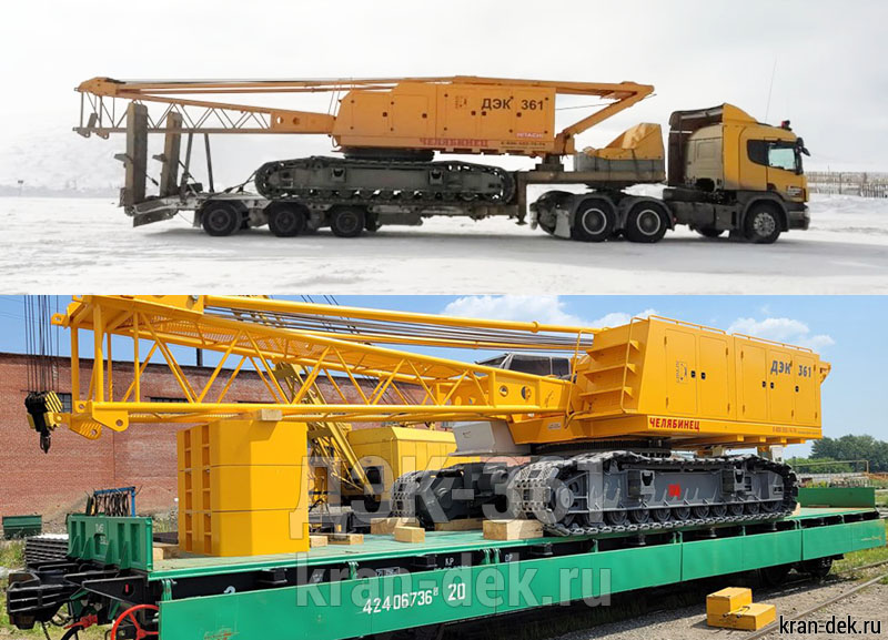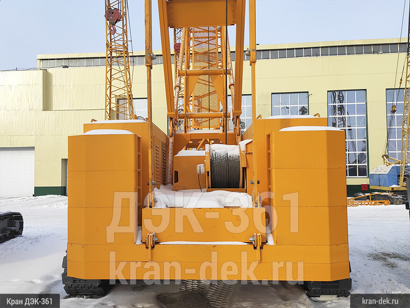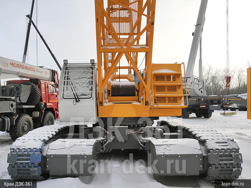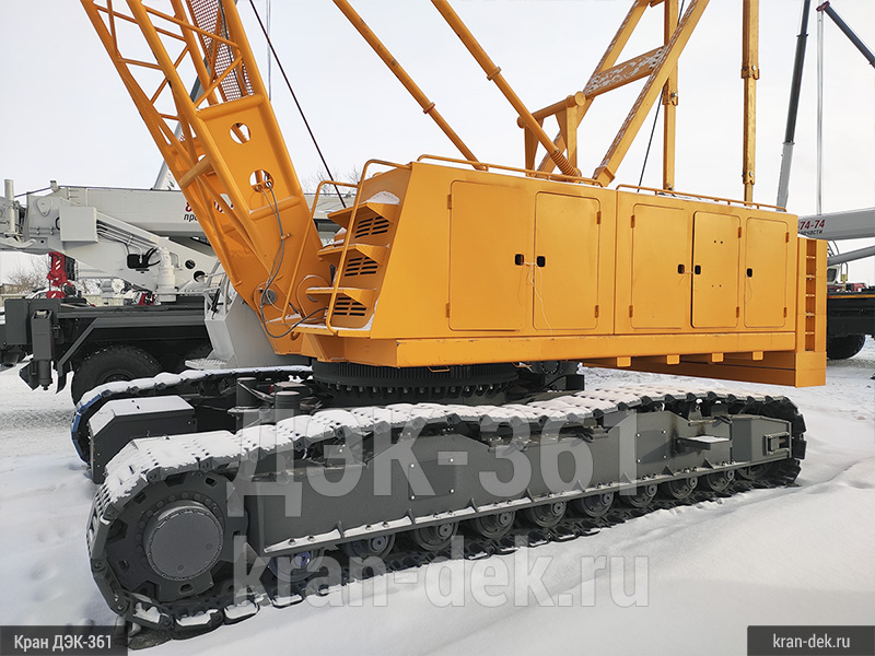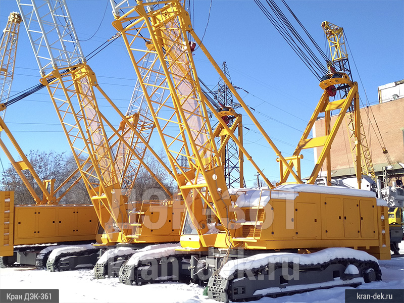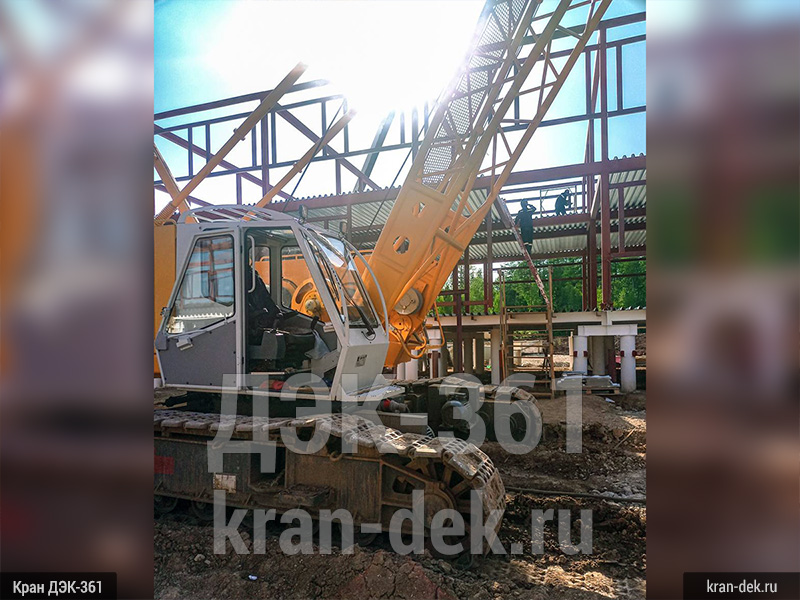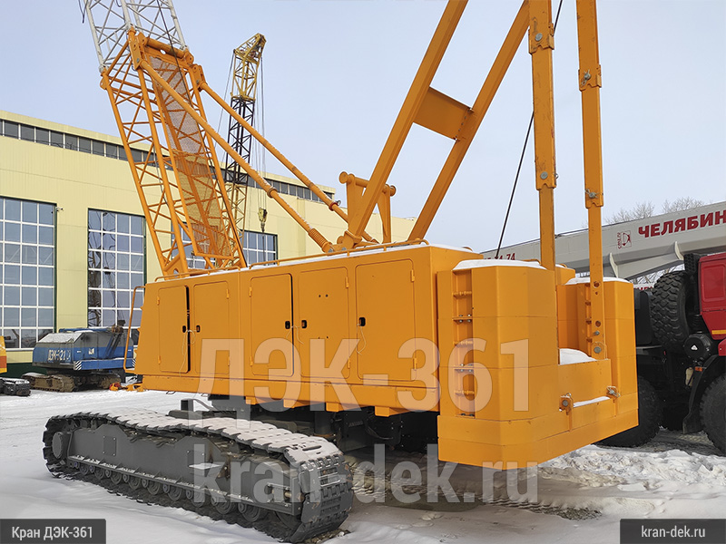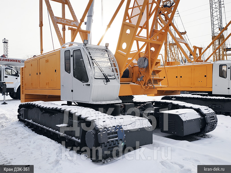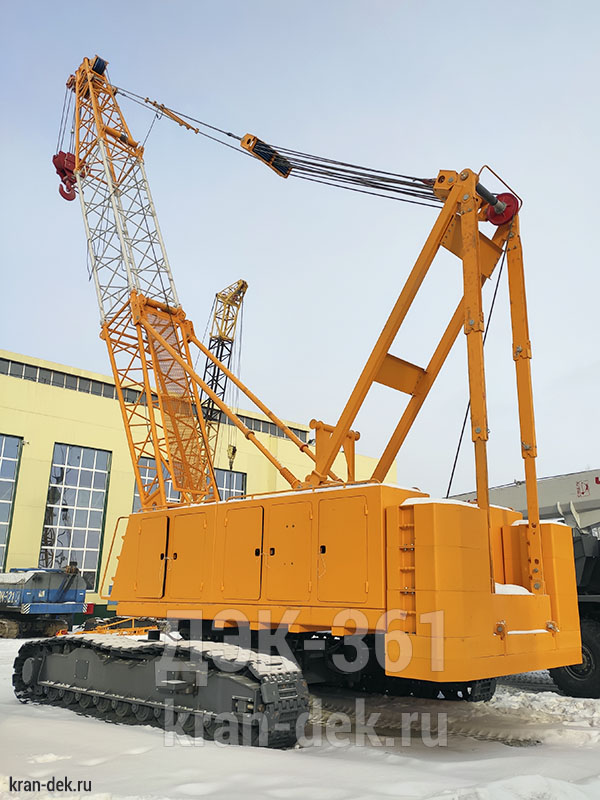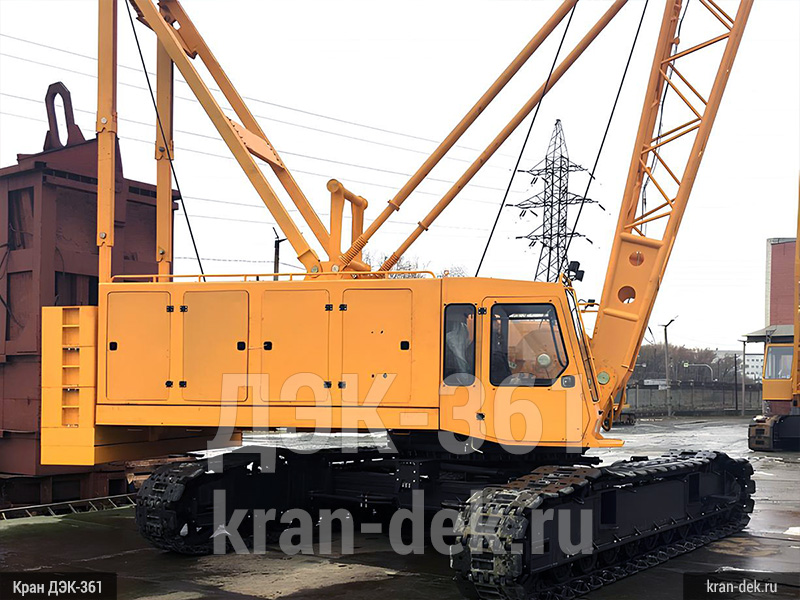 Кран ДЭК-361 – это монтажный стреловой дизель-электрический полноповоротный самоходный кран на гусеничном ходу с максимальной грузоподъемностью до 36 тонн. Ранее до 2015г. выпускалась гидравлическая модель ДЭК-361.