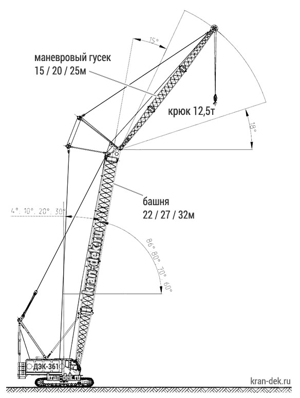 ДЭК-361: башенно-стреловое исполнение (БСО: башня + маневровый гусек)